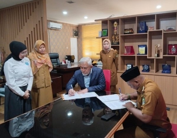 Penandatanganan nota kesepahaman dilakukan oleh Rektor Universitas Salakanagara, Irmanjaya Thaher, dan Kepala Dispora Kota Tangerang, Kaonang, di Gedung Cisadane, Karawaci, Senin (2/3/2026). Kegiatan ini turut disaksikan jajaran pejabat Dispora serta pimpinan universitas.