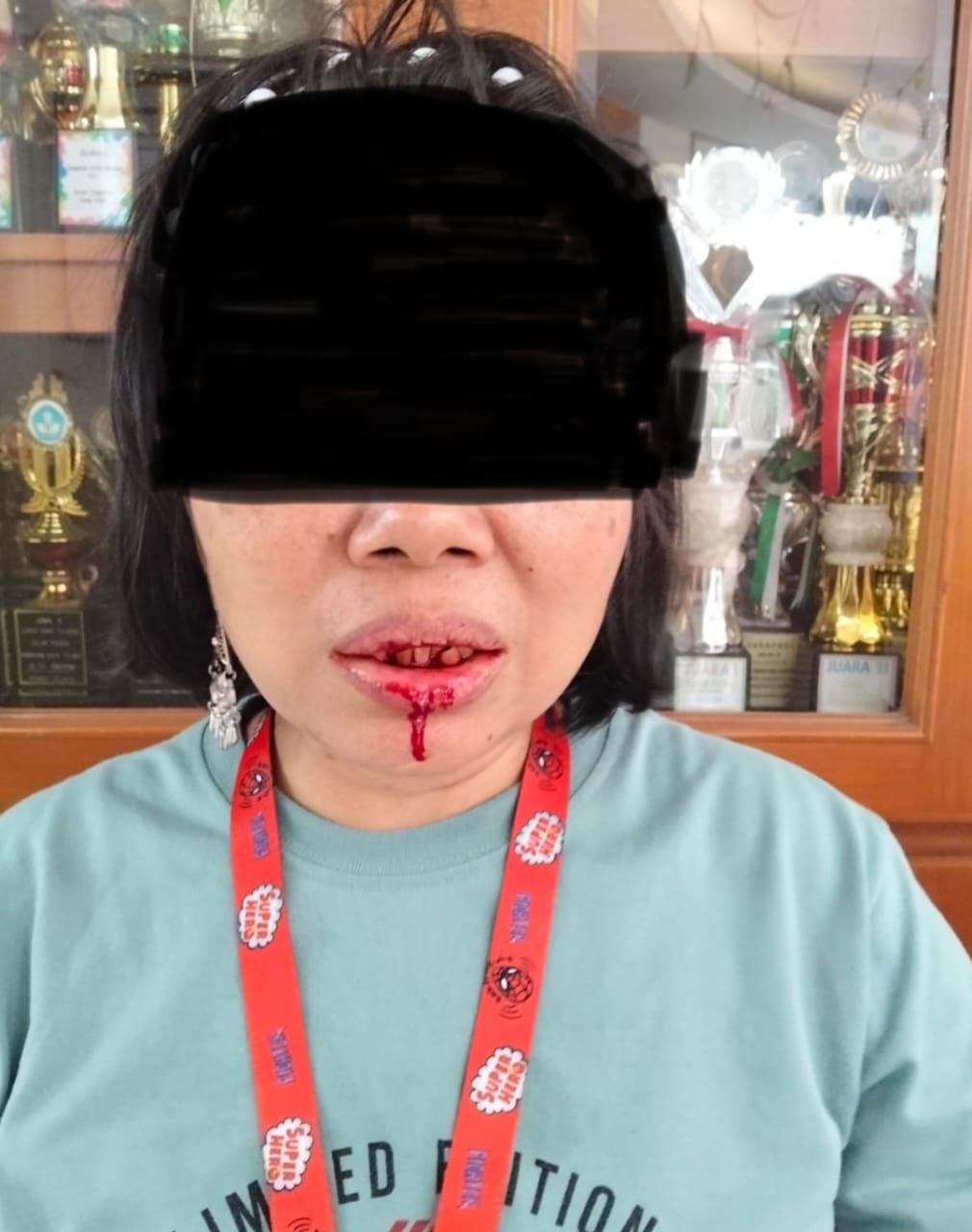 Kekerasan meliputi pukulan kepelipis dan bibir serta tendangan kekaki korban,yang mengakibatkan bibir luka dan memar .Tragisnya lagi,Kejadian ini terjadi sekitar pukul 10.5 wib,didepan sekolah Penabur Kota Tangerang,disaat Korban hendak menjemput Justin APS(6);anak majikannya,AS,suami dari pelaku DCS.